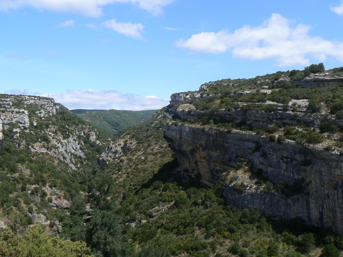 Die Gegend ist von Schluchten zerteilt. Da, in einer solchen tiefen Schlucht, befindet sich die Stadt Minerve in einer Festung auf einen Berg. Wir sind nicht mehr weit.